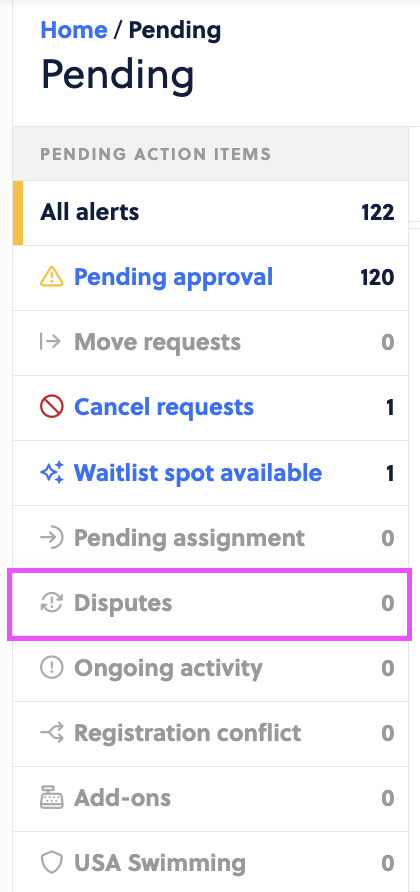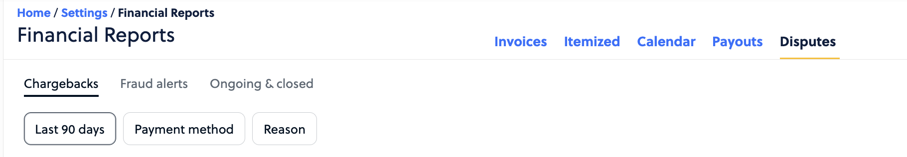 You can also view this via the Financial page via Settings & Reports by clicking on Disputes. You can view here by status as well.